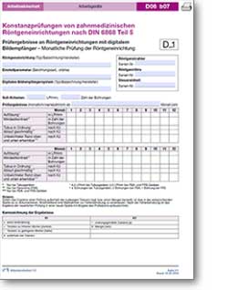 Formblatt D1, zum Herunterladen auf das Bild klicken.Jedes Röntgengerät benötigt ein eigenes Prüfergebnis-Formblatt, in dem die Ergebnisse eingetragen werden.